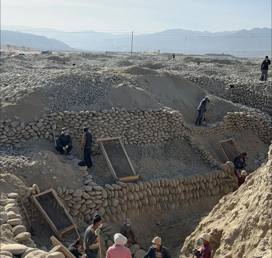 (和田玉原石挖掘现场)